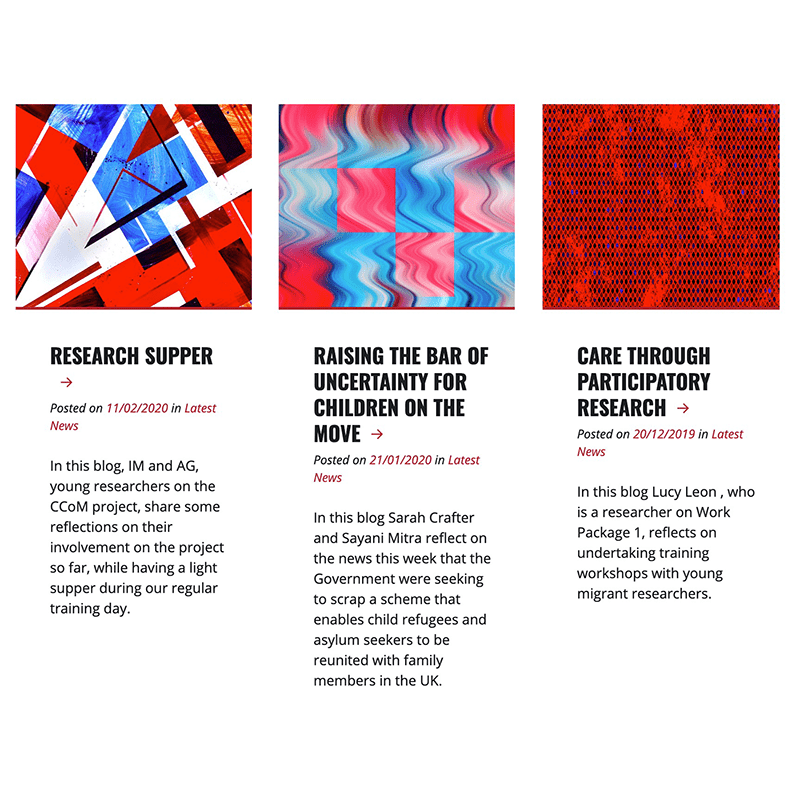 How do you make a website feel alive while maintaining anonymity and excluding images of participants? Use abstract visuals that signify fluidity and multi-directionality while maintaining the colour palette of the brand identity throughout.